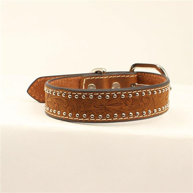DBL Barrel 9308202-M 0.87 in. Floral Embossing Nailheads Dog Collar, Brown - Medium