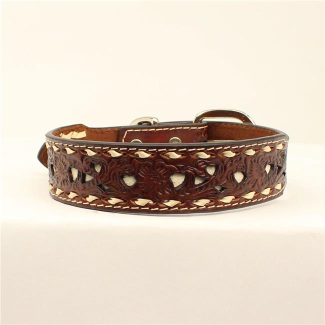 DBL Barrel 9308202-XL 0.87 in. Floral Embossing Nailheads Dog Collar, Brown - Extra Large