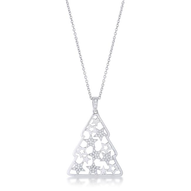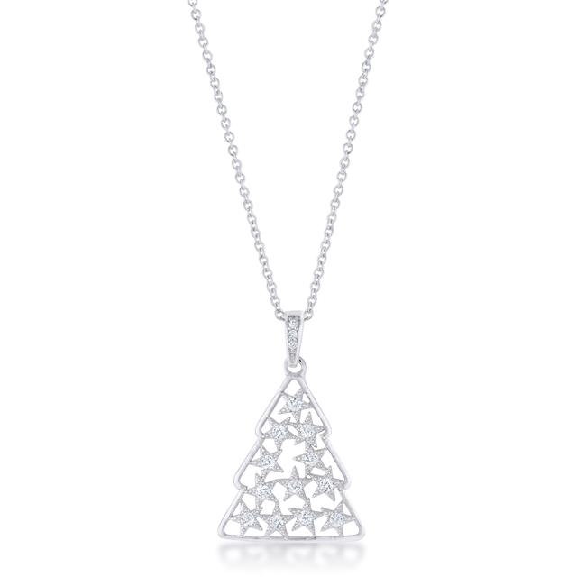 Jgoodin P11464R-C01 Womens 0.2 CT Cubic Zirconia Rhodium Christmas Tree with Mixed Stars Pave Holiday Pendant