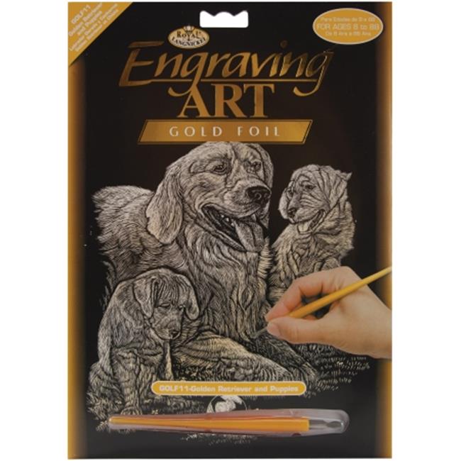 Gold Foil Engraving Art Kit 8''X10''-Golden Retriever & Puppies
