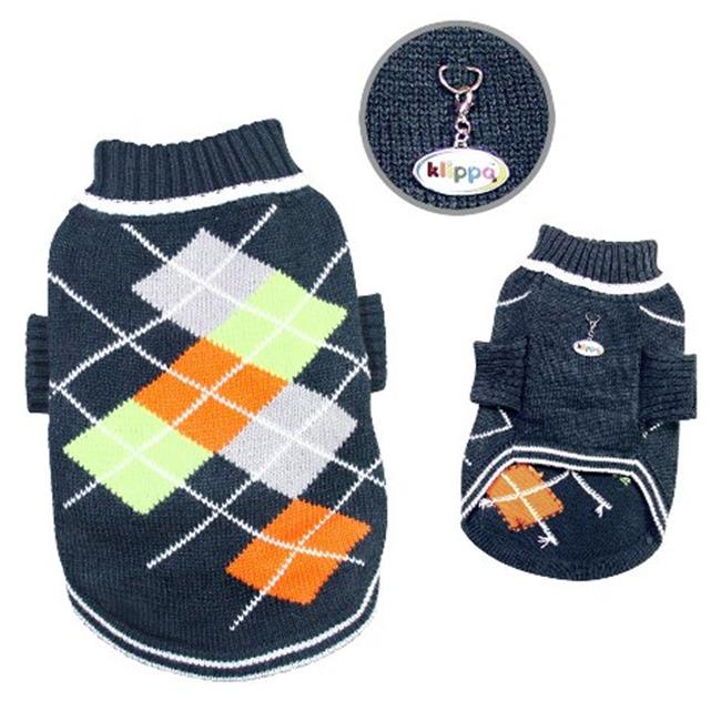 Klippo Pet KSW102SZ Argyle Pattern Turtleneck Sweater, Navy Charcoal - Small