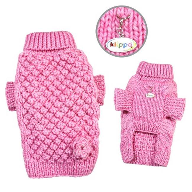Klippo Pet KSW103MZ Pink Bobble Stitch Turtleneck Sweater - Hand Knitted - Medium