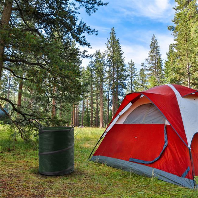 Wakeman 75-TB1005 13 gal Portable Trash Bag Holder with Collapsible Trashcan for Indoor-Outdoor Garbage Use, Green