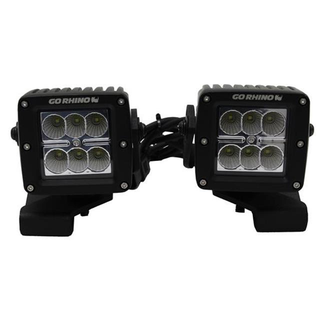 Go Rhino 732230T 3 in. LED Cube Light Hood Mount Brackets for 2018-2019 Jeep Wrangler JL, Black