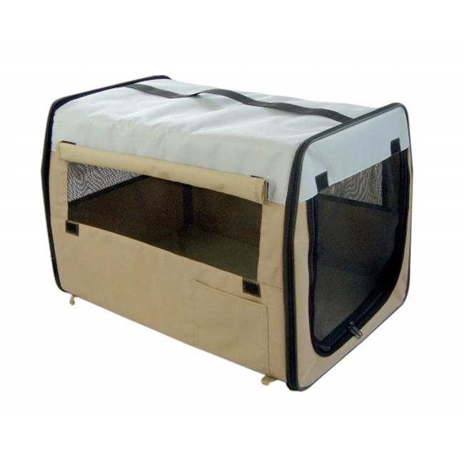 Pet Life H1KHLG Kahki Folding Zippered Easy Pet Crate - LG
