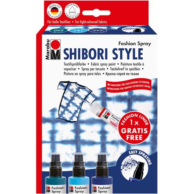 Marabu 17199000-95 Creative Fashion Spray Set - Shibori - Sky Blue, Night Blue & Petrol
