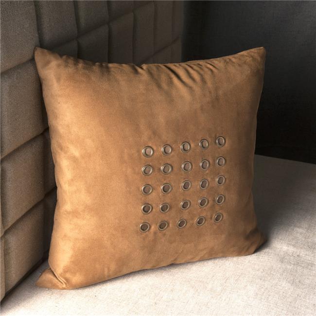 Edie at Home EAH012XXBROW27 Centered Grommets Accent on Micro Suede Pillow Brown