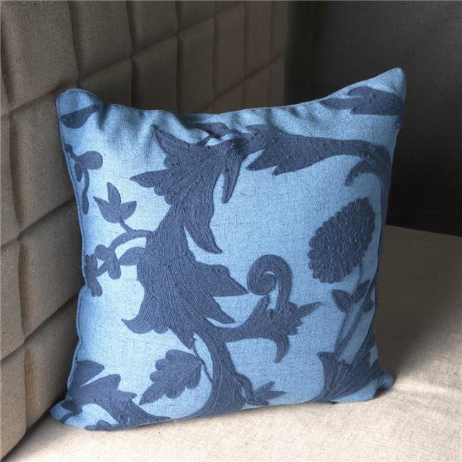 Edie at Home EAH014XXINDO27 Floral Crewel Embroidered Pillow Indigo