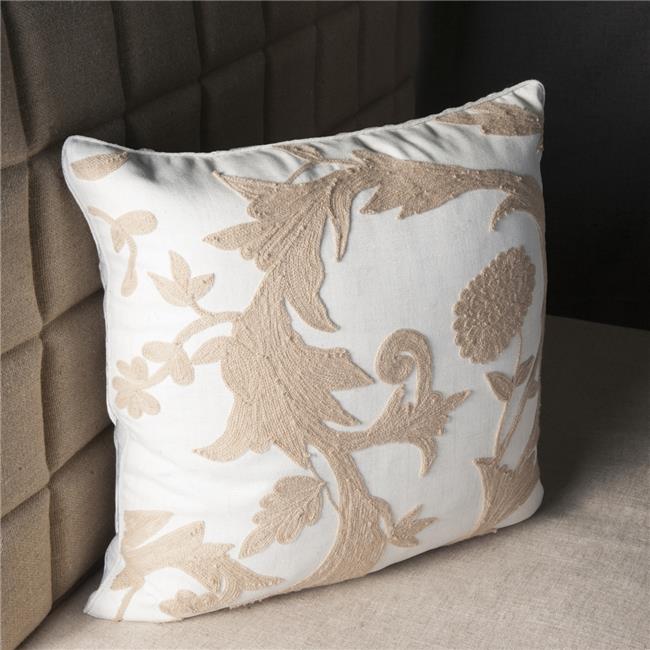 Edie at Home EAH014XXOATX27 Floral Crewel Embroidered Pillow Oat