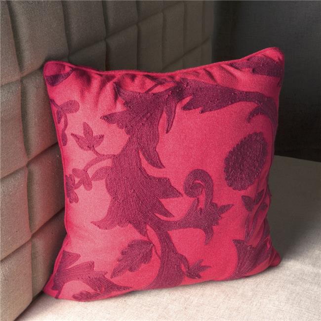 Edie at Home EAH014XXREDX27 Floral Crewel Embroidered Pillow Red