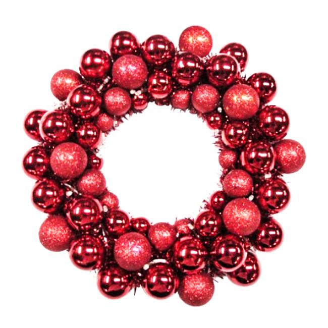Winterland BAT-BWR-16-RE-PW Red Ball Wreath With Battery Powered Pure White Led