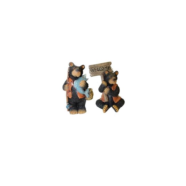 Hi-Line Gift 72036-04 Fairy Garden Outdoor Decor - Bear With Fish - Bear With Welcome Sign 2 Piece Set