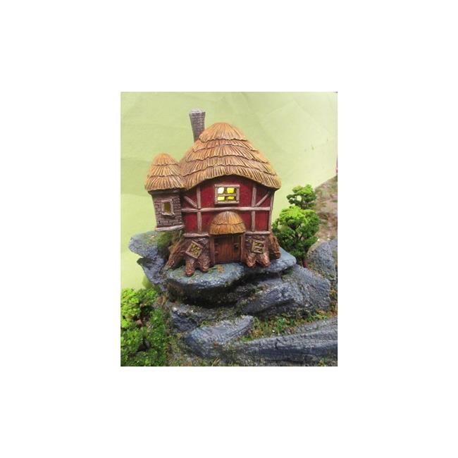 Hi-Line Gift 72042-38 Fairy Garden Outdoor Decor - Thatched Roof Red Barn With LED Battery Operated