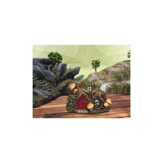 Hi-Line Gift 72046-04 Fairy Garden Outdoor Decor - Tree Root House With Red Door And Mushrooms