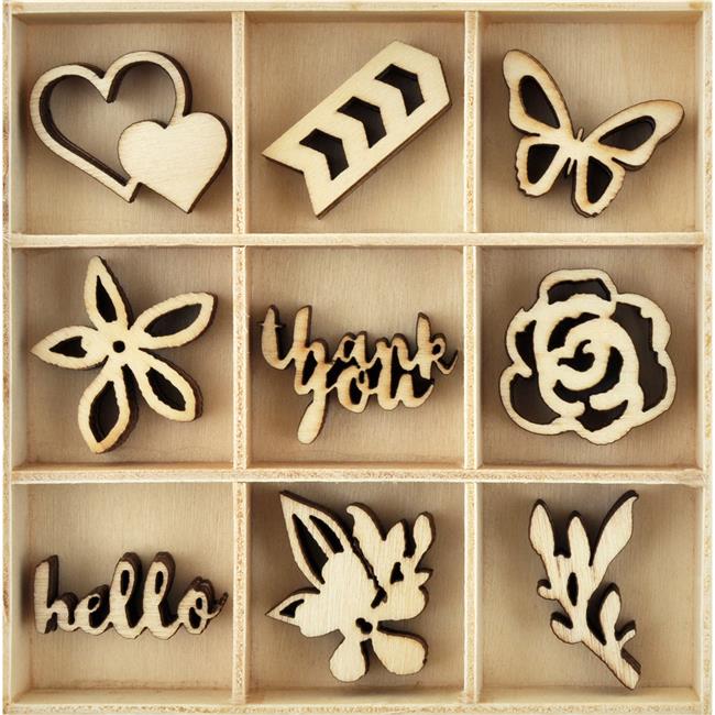 Kaisercraft FL597 Themed Mini Wooden Flourishes - Bloom, Pack Of 45