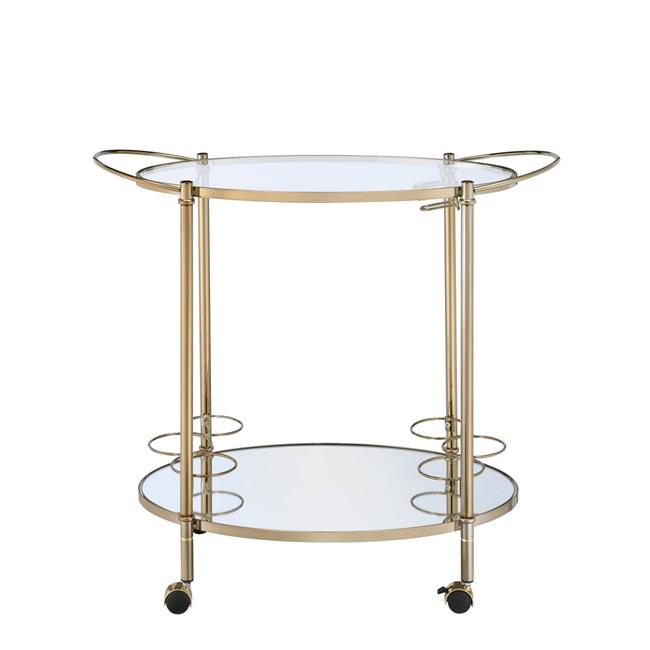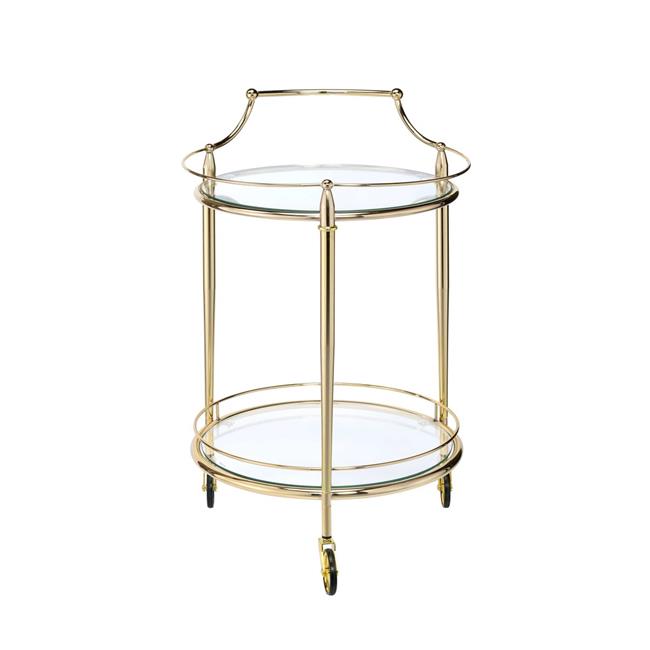 HomeRoots Furniture 319143 Serving Cart - Gold & Clear Glass