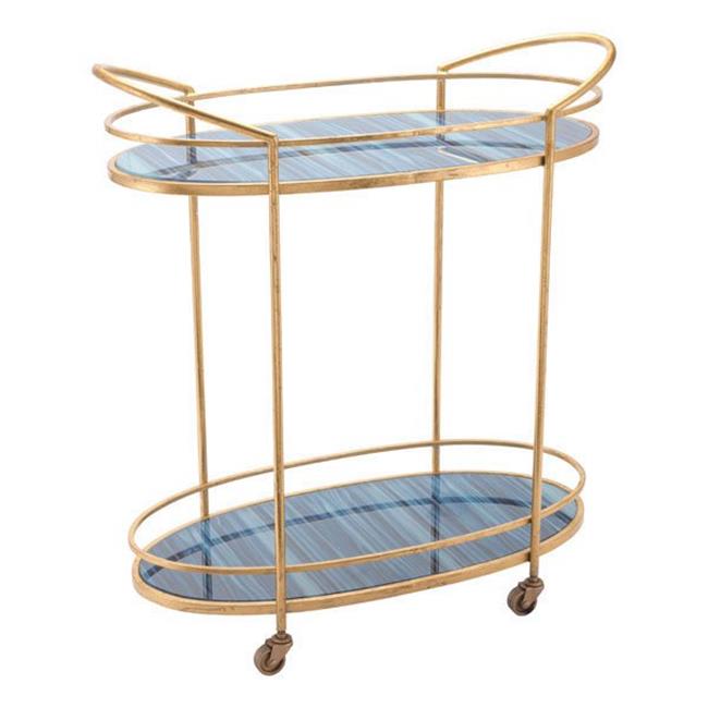 HomeRoots Furniture 295818 31.5 x 28.5 x 14 in. Blue & Antique Gold Bar Cart