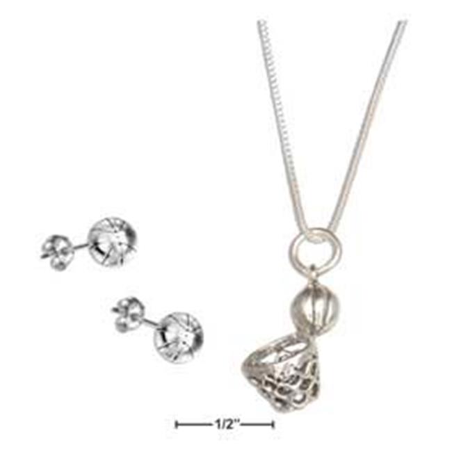 Plum Island Silver P-021108 18 in. Sterling Silver Hoop & Basketball Pendant Necklace with Basketball Earrings Set