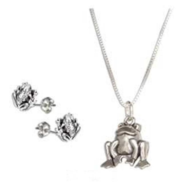 Plum Island Silver P-021107 18 in. Sterling Silver Frog Pendant Necklace with Frog Earrings Set