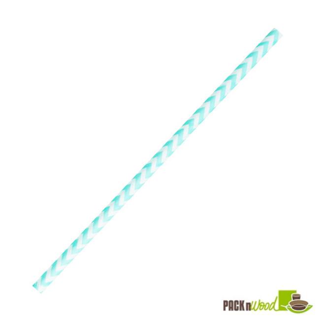 Packnwood 210CHP19CHTB 7.75 in. Teal Blue & White Chevron Design Paper Straw - Unwrapped