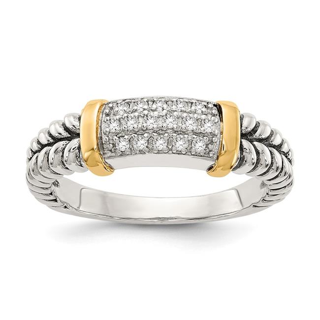 Shey Couture QTC5-7 Sterling Silver with 14k Gold Diamond Ring, Size 7