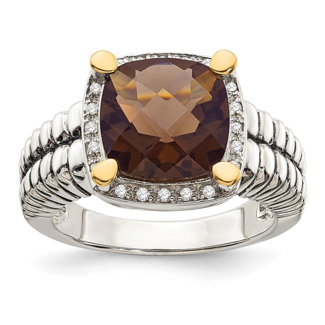 Shey Couture QTC14-8 Sterling Silver with 14k Gold Smoky Quartz & Diamond Ring, Size 8