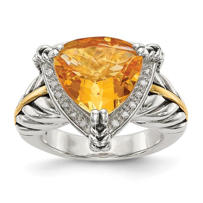 Shey Couture QTC189-8 Sterling Silver with 14k Gold Citrine & Diamond Ring, Size 8