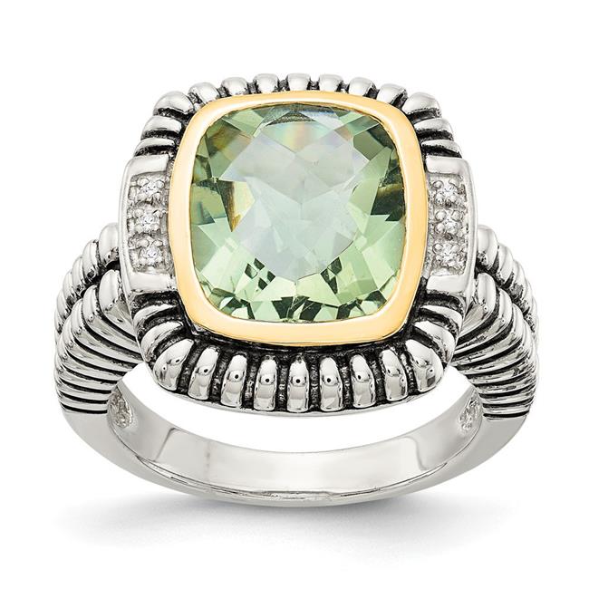 Shey Couture QTC192-8 Sterling Silver with 14k Gold Green Quartz & Diamond Ring, Size 8