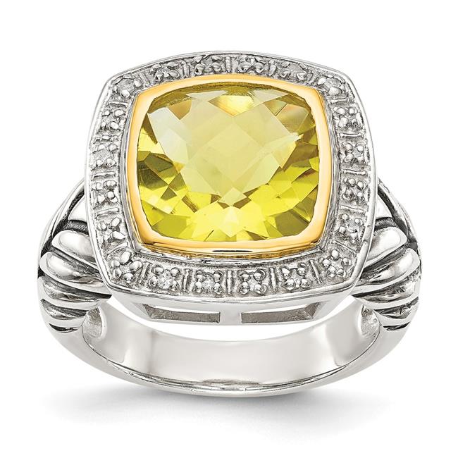 Shey Couture QTC37-8 Sterling Silver with 14k Gold Lemon Quartz & Diamond Ring, Size 8