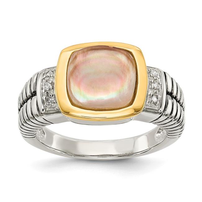 Shey Couture QTC62-8 Sterling Silver with 14k Gold Black Mother of Pearl & Diamond Ring, Size 8