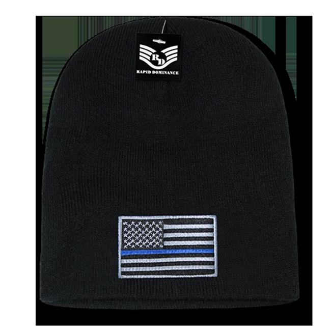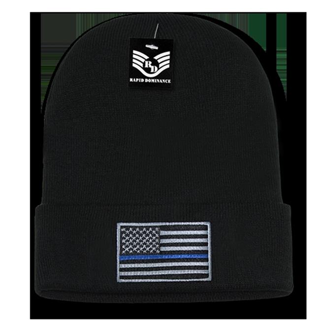 RapidDominance R94-TBL-BLK USA Flag Cuff Beanies, Black - Thin Blue Line
