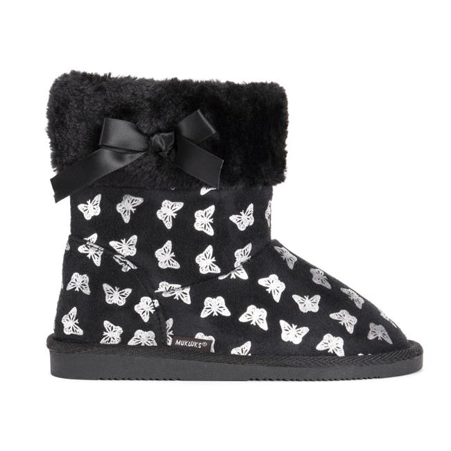 Muk Luks 0015021001-2 Girls Madison Butterfly Boots, Black & Butterfly - Size 2