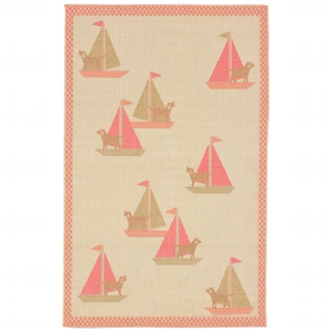 Liora Manne PLY58135684 Wilton Woven Playa Sailing Dogs 100 Percent Polyproylene Rug, Orange - 4 ft. 10 in. x 7 ft. 6 in.