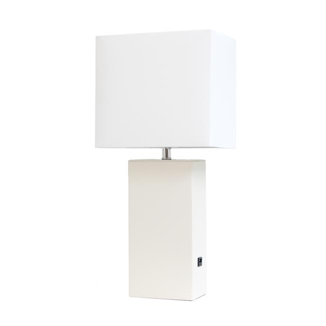 Elegant Designs LT1053-WHT Modern Leather Table Lamp with USB & White Fabric Shade, White