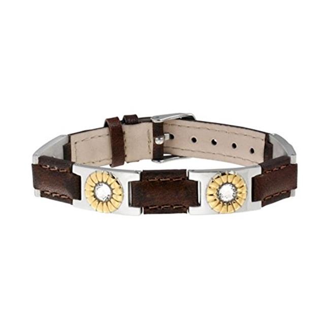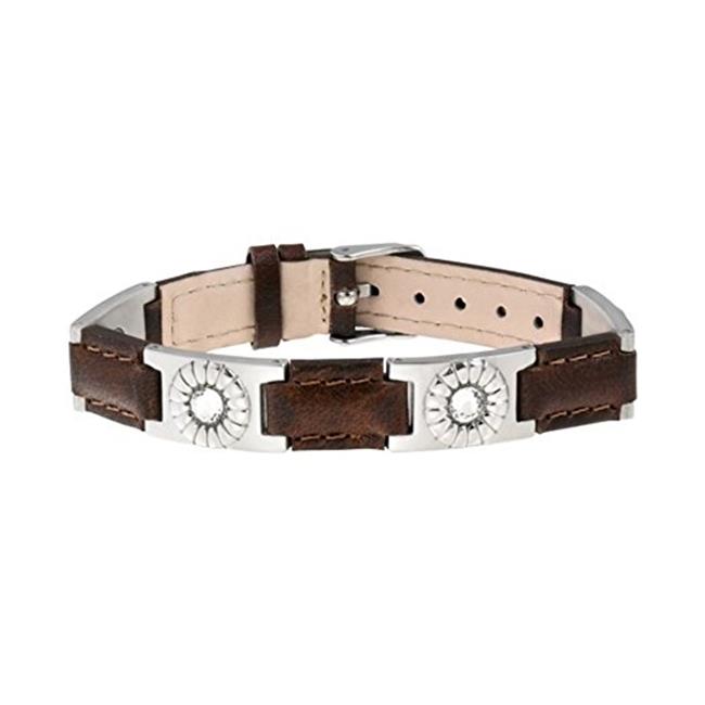 Sabona 26200 Leather Gem Stainless Magnetic Bracelet, Brown & Silver - OSFM