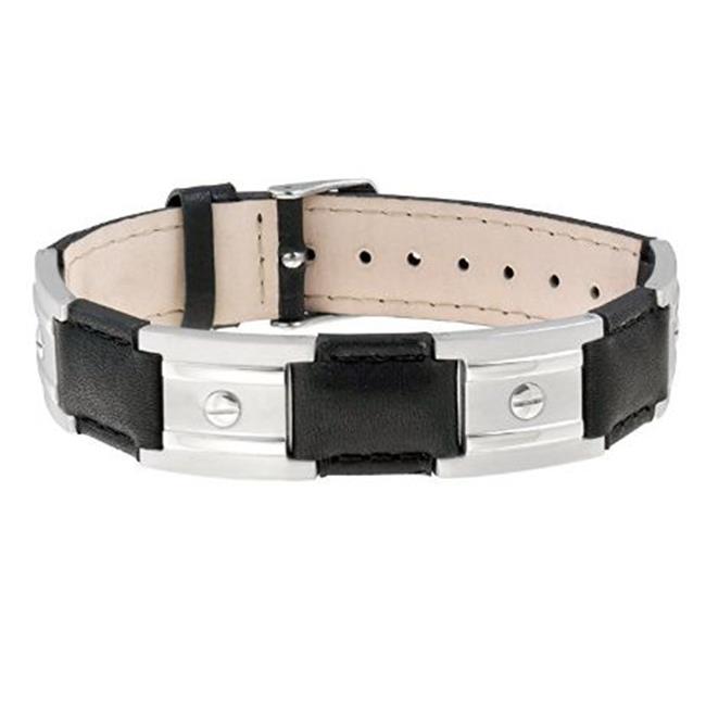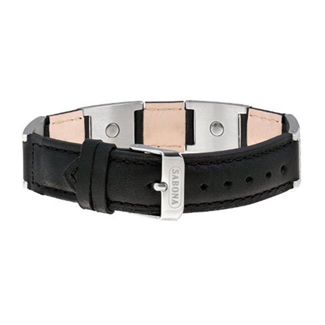 Sabona 26300 Leather Dress Stainless Magnetic Bracelet, Black & Silver - OSFM
