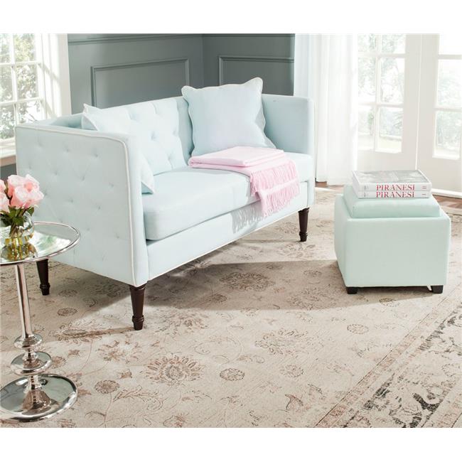 Safavieh FOX6206C Sarah Tufted Settee with Pillows, Powder Blue & White