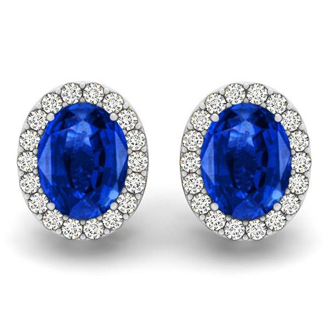 Ilano ER590s-6lg-14kw 6 x 4 in. 1.5 CT 14K White Gold TW Lab Grown Diamond & Sapphire Oval Helo Earring Set