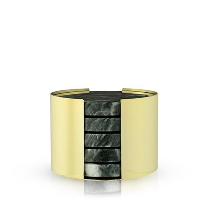 Viski 6458 2.75 in. Burke Coasters, Emerald & Gold - Set of 5
