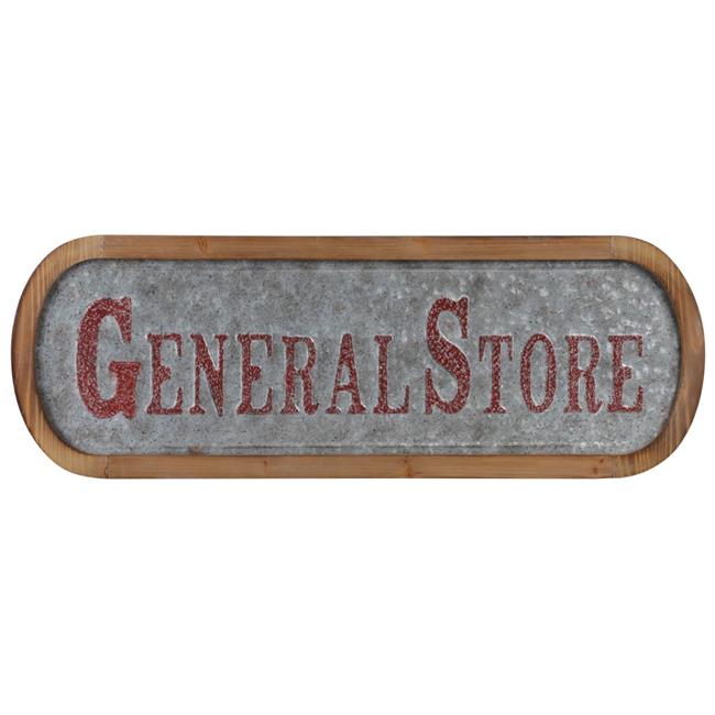 Urban Trends Collection 53915 Metal Rectangle Wall Art General Store Painted Embossed Design with Natural Wood Frame & Sawtooth Hanger Galvanized Finish - Gray