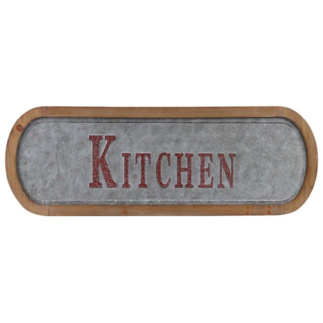 Urban Trends Collection 53916 Metal Rectangle Wall Art Kitchen Painted Embossed Design with Natural Wood Frame & Sawtooth Hanger Galvanized Finish - Gray