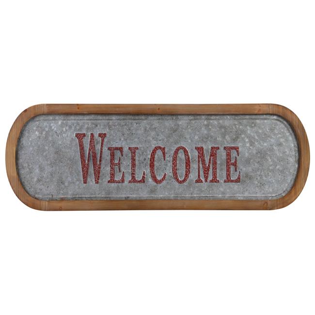 Urban Trends Collection 53917 Metal Rectangle Wall Art Welcome Painted Embossed Design with Natural Wood Frame & Sawtooth Hanger Galvanized Finish - Gray
