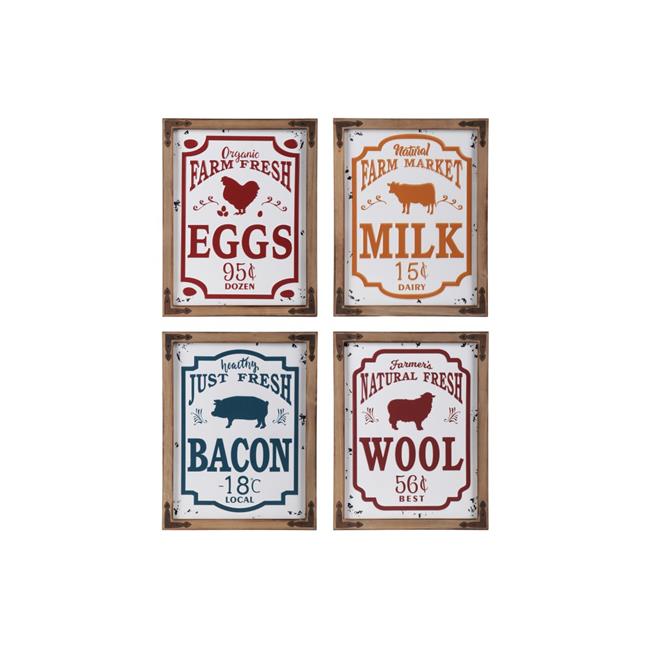 Urban Trends Collection 53918 AST Metal Rectangle Wall Art Farm Theme with Animal Shape Embossed Design - Polychromatic