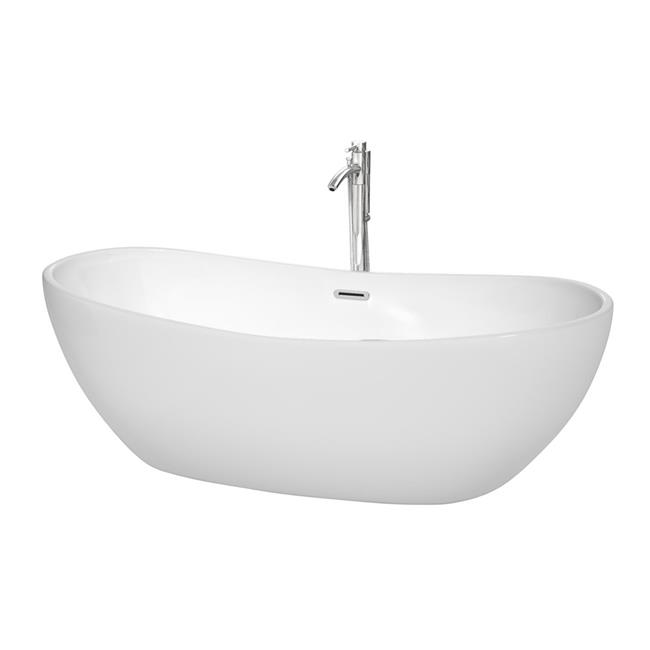 Wyndham Collection WCOBT101470 70 in. Freestanding Bathtub Drain & Overflow Trim - White with Polished Chrome