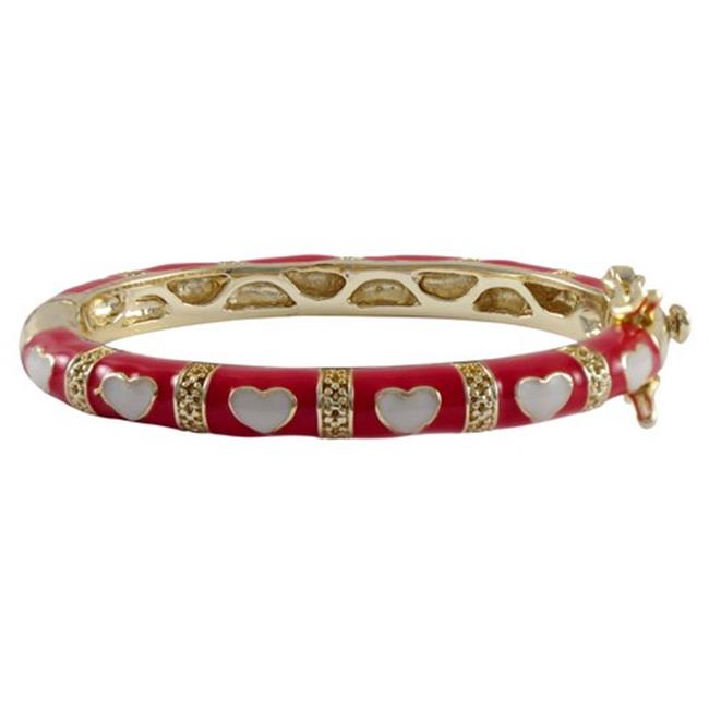 Dlux Jewels 35 mm Red Enamel Hearts-Gold Plated Brass Bangle, White