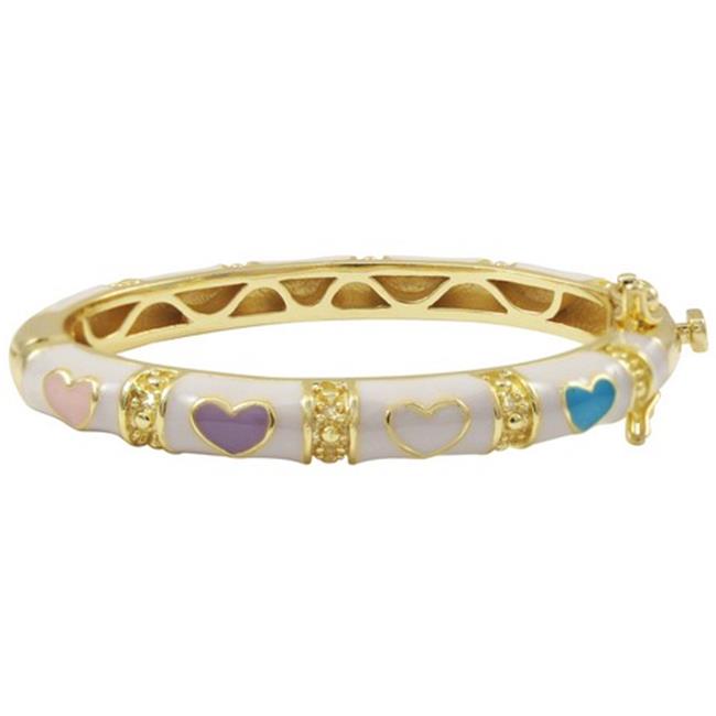 Dlux Jewels 35 mm White Enamel Hearts-Gold Plated Brass Bangle, Multi Color
