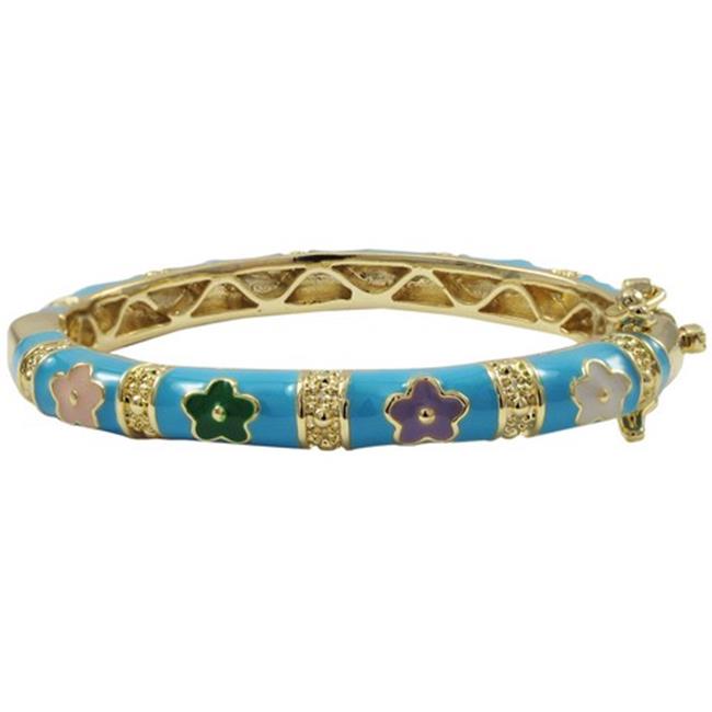 Dlux Jewels 35 mm Turquoise Enamel Flower-Gold Plated Brass Bangle, Multi Color