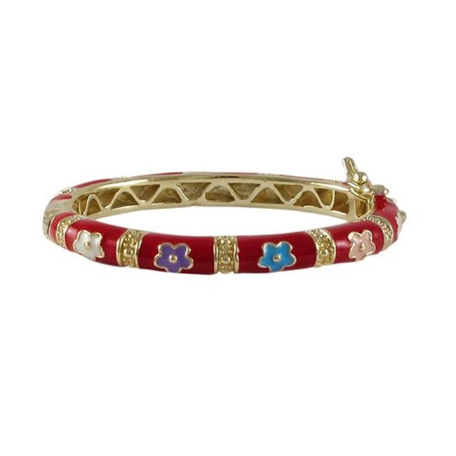 Dlux Jewels 35 mm Red Enamel Flower-Gold Plated Brass Bangle, Multi Color