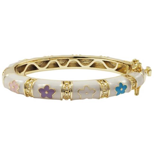 Dlux Jewels 4.5 in. Pink Multi Enamel 14 mm Flower & Gold Plated Brass Bangle Bracelet