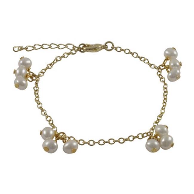Dlux Jewels 4 mm White Fresh Water Pearls Dangling, Gold Plated Sterling Silver Chain Bracelet - 5 in.